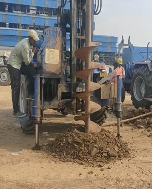 - Positioning of Tractor : The tractor is maneuvered into position at the location where the piles are to be installed. Careful attention is paid to ensure that the tractor is stable and properly aligned for driving the piles.