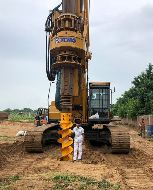 - Under-reaming : Once the desired depth is reached, the under-reamer is activated to expand and create the bulb-shaped cavity at the base of the pile. This under-reamed section significantly increases the bearing capacity of the pile by providing a larger contact area with the surrounding soil, thus reducing settlement and enhancing stability.